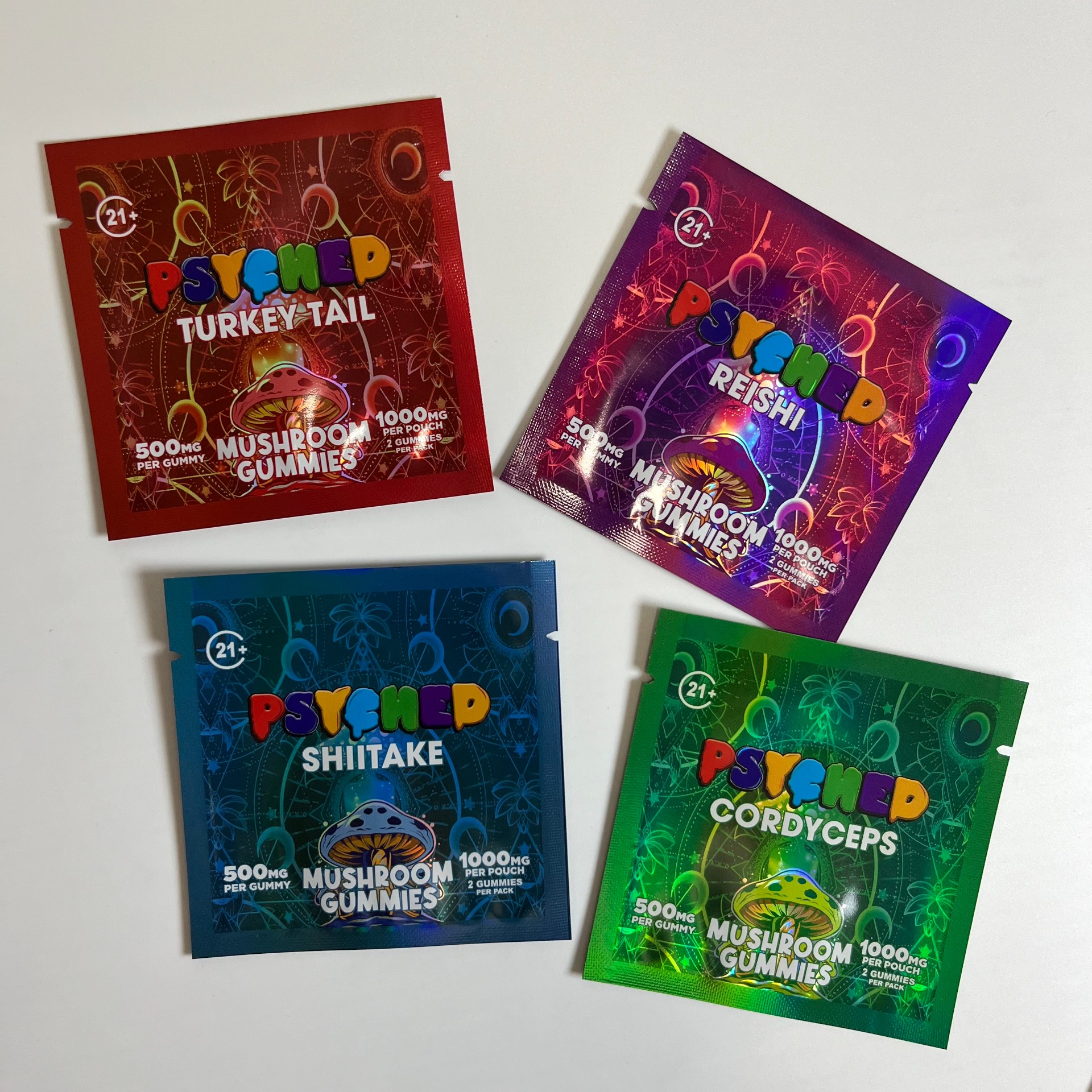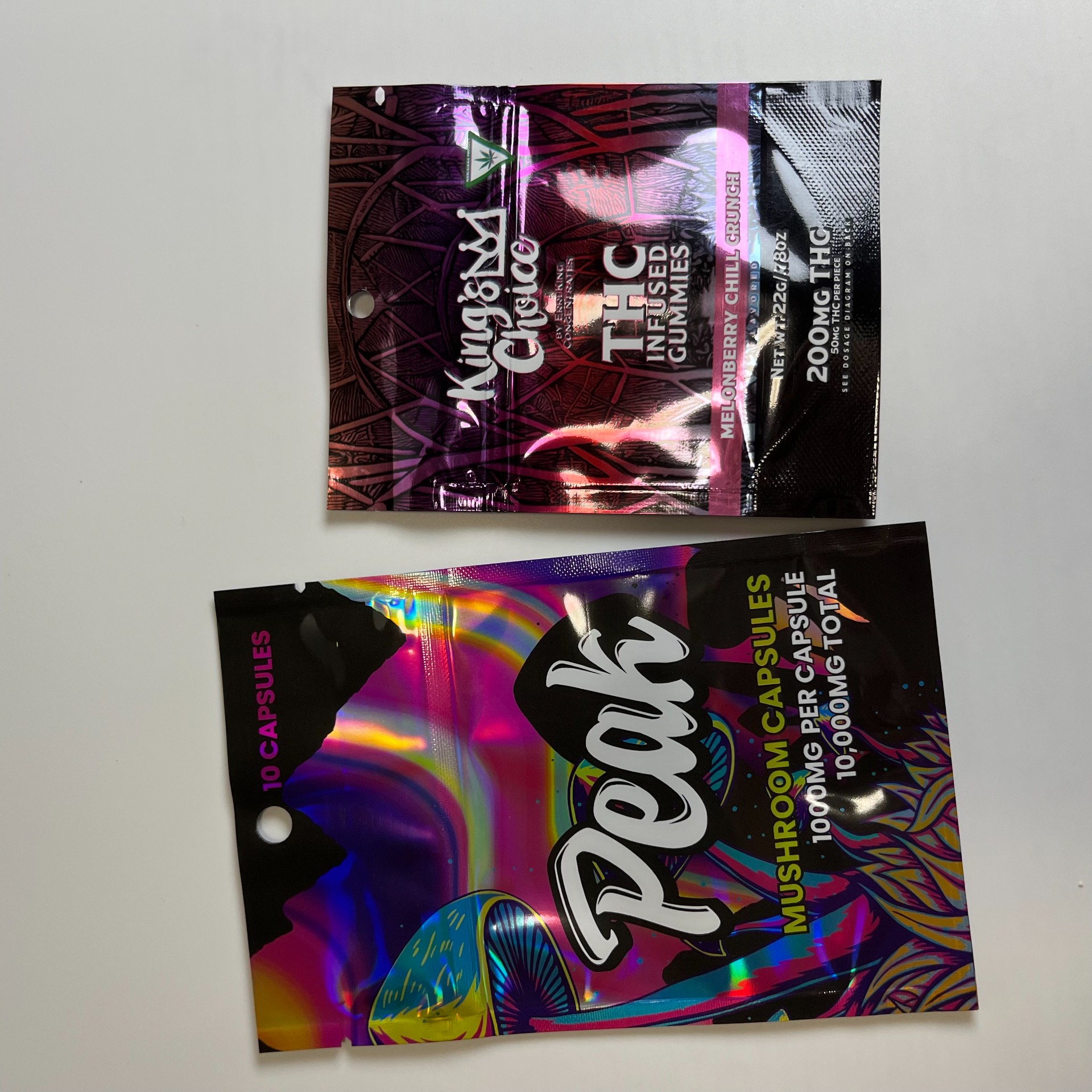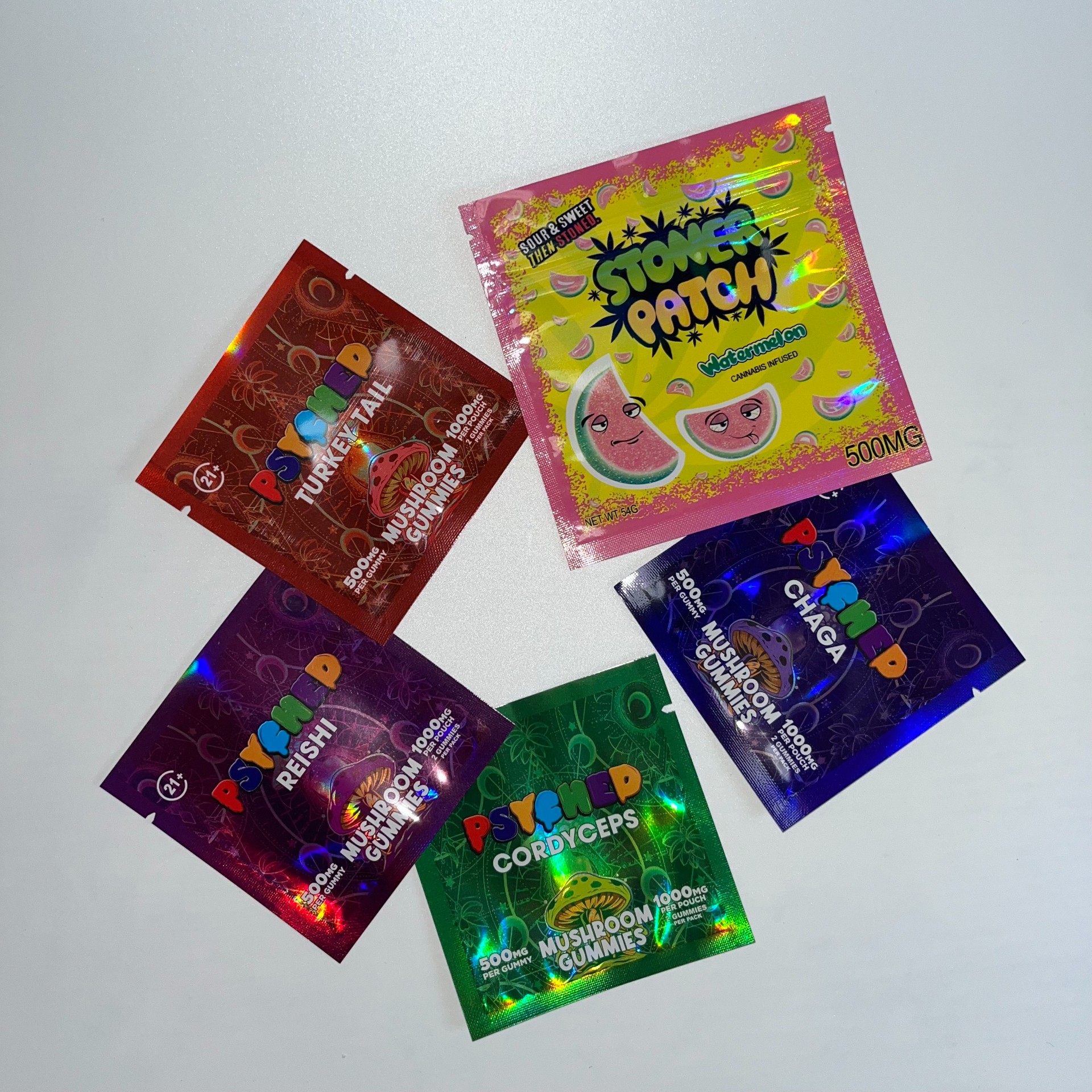 Custom Printed Die Cut Bag Holographic Child Proof Pouch Smell Proof Special Irregular Shape Gummies 3.5g Edible Packaging